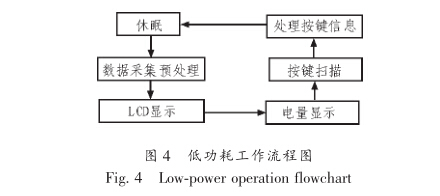 為了達到低功耗的標準,就必須要實現休眠模式與正常 模式切換的功能,所以壓力表在長期沒有操作的狀態下會進 入如圖4所示的一種低功耗模式。單片機進入到休眠模式后 會在規定時間內被喚醒,而在休眠模式下其功耗會大大降 低,單片機被喚醒后會進工作狀態,工作完后會再次進入休 眠模式。這樣不僅不會影響單片機工作,還能延長電池的使 用壽命。