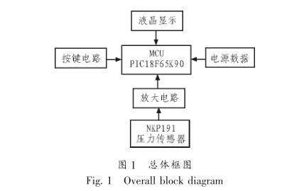 外圍電路主要包括由MCU模塊、壓力傳感器模塊、液晶顯示 模塊、電源數據采集和按鍵電路等。