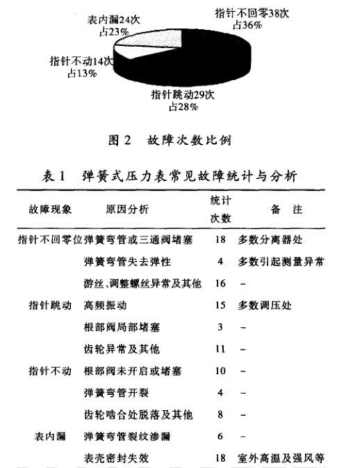 結(jié)合曰常使用管理和檢查過程中的注意事項以及所出現(xiàn)的一般故障現(xiàn)象和失準(zhǔn)情況,從彈簧 式壓力表的結(jié)構(gòu)原理分析入手,分析其常見故障判斷與維護方法。