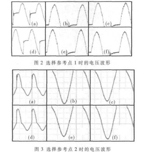 從圖1可知,對于直流磁電儀表,電壓的測量相對 要簡單一些,而交流表則復(fù)雜一些,其兩條電流支路是 半波整流電路,即流過各支路的電流是半波脈動直流。 若取參考點1,則測得的Ua和Ub波形見圖2,其中(a)、 (d)是完整波形,可見出現(xiàn)了嚴(yán)重的畸變,這是由于電路 中存在感性元件的緣故;(b)、(c)是壓力為零時Ua和U 的正半周有效波形,(e)、(f)是壓力為8kg/cm2時Ua和U 的正半周有效波形。通過分析可知,只要正確提取每個 電壓的正半周信號,濾波后再完成Ub/ Ua運算,壓力就 可準(zhǔn)確計算。同理,若取參考點2,據(jù)圖3所示波形可 知,只要正確提取每個電壓的負(fù)半周信號,然后完成Ub/ Ua運算,壓力同樣可準(zhǔn)確計算。