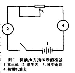 用萬用表R xl檔測量電熱線圈是否有斷路、短 路現(xiàn)象,其阻值應(yīng)為18. 5 ±0.5 n。在電熱線圈完好 的條件下,按圖1所示電路接人毫安表,檢查機油壓 力指示表在各種規(guī)定電流下的指針偏轉(zhuǎn)值是否符合 規(guī)定。