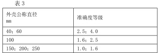 2、選擇壓力表時還要考慮儀表外殼公稱直徑與準確度等 級的關系,各等級壓力表的外殼公稱直徑見表3。