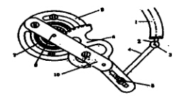首先壓力表機芯的結構如圖1所示,它是由上夾板10, 下夾板9;扇齒輪6;中心齒輪8;游絲7;調整螺絲和滑塊