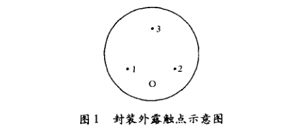 傳感器及放大電路封裝外露觸點(diǎn)如圖1所示 (圖中1、2、3為測(cè)試觸點(diǎn),0為定位爪)。