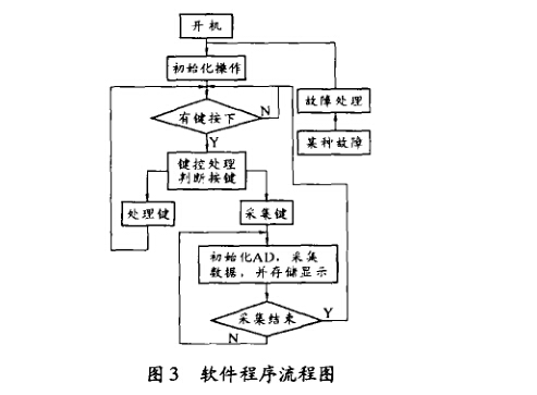 軟件共分幾個(gè)大的模塊:初始化模塊、數(shù)據(jù)采 集模塊、顯示控制模塊、按鍵控制模塊、存儲(chǔ)控制 模塊、回放控制模塊和故障處理模塊。針對(duì)現(xiàn)場(chǎng)復(fù) 雜環(huán)境,為避免偶然因素影響程序正常工作,添加 軟件陷阱“軟件看門狗”,使偶然跑飛的程序能夠 很快回到工作狀態(tài)。圖3為軟件程序流程圖。