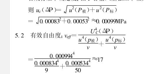 取置信概率P = 95 % veff取17查t分布表得到 k95 = t95(17)= 2. 11