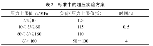 基于以上分析,筆者建議設置更加合理的超壓負荷, 能使用常用標準器(活塞式壓力計)達到超壓試驗負荷 值,并且U<160MPa時,超壓量扣隨壓力上限值U的 增加而單調遞增。