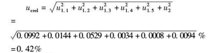 這里需要注意的是檢定規程表1規定“允許誤 差% (按測量上限的百分數計算)”。既然測量結果 (即示值誤差是按測量上限作分母得到的因為測 量不確定度的表達形式應該與測量結果的表達形式保 持一致所以測量結果的不確定度也應該是按測量上 限作分母計算得到。