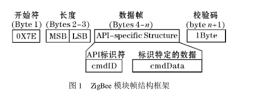 標準的Modbus是使用RS-232兼容串行接口,定義了連接口的針腳、電纜、信號位、傳輸波特率、奇偶校驗。 控制器能直接或經由Modem組網。原來的標定軟件采用Modbus協議是基于數據鏈路層的通信,而ZigBee的 API模式是網絡層的通信。這樣就要求在Modbus的基礎上加上API的協議層,才能讓標定軟件實現ZigBee的 順利通信。ZigBee的API模式幀結構框架如圖1所示,數據幀中API標識符cmdID表明cmdData中包含何種數 據。在本程序設計使用的XBee系列2模塊中,當cmdID = 0X10時,表明ZigBee傳輸數據請求;cmdID = 0X90 時,表明ZigBee接受數據包。最后一位的校驗碼(數據校驗和)是用來檢驗數據的完整性。
