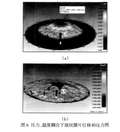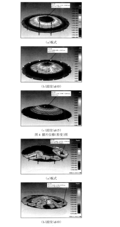 從圖中看出,板式膜片的位移(形變)較小;波紋膜片的位移