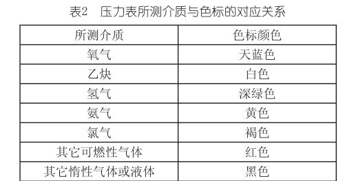 另外,根據壓力表所測介質不同,壓力表應 采用不同的色標,并注明所測介質的名稱,詳見 表2。