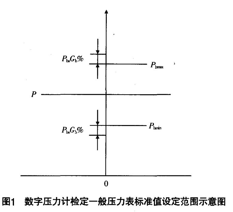 用數(shù)字壓力計檢定一般壓力表時由于壓力表允 許誤差較大,設(shè)定標(biāo)準(zhǔn)值時可以在一定范圍內(nèi),如圖1 所示。